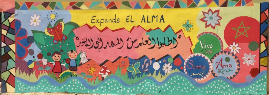 Estas tres palabras presidían, junto con la frase Expande el alma, la pared de una escuela de Er-rachidía, una ciudad arropada por el Atlas marroquí. Solo tiene dos clases, una de ellas con apenas diez pupitres, las ventanas están rotas y los cristales, al alcance de los niños. En las pizarras apenas se distingue lo que escribes. El suelo es una manta de arena rojiza del desierto. En el patio, en un rincón hay escombros con tablas de madera, clavos, vidrios y azulejos hechos añicos.
